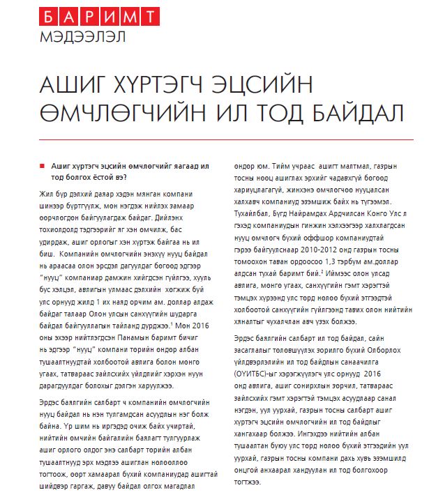 Жил бүр дэлхий даяар хэдэн мянган компани шинээр бүртгүүлж, мөн нэгдэж нийлэх замаар өөрчлөгдөн байгуулагдаж байдаг. Дийлэнх тохиолдолд тэдгээрийг яг хэн өмчилж, бас удирдаж, ашиг орлогыг хэн хүртэж байгаа нь ил биш. Компанийн өмчлөгчийн энэхүү нууц байдал нь араасаа олон эрсдэл дагуулдаг бөгөөд эдгээр “нууц” компаниар дамжин хийгдсэн гүйлгээ, хууль бус хэлцэл, авлигын улмаас дэлхийн хөгжиж буй улс орнууд жилд 1 их наяд орчим ам. доллар алдаж байдаг талаар Олон улсын санхүүгийн шударга байдал байгууллагын тайланд дурджээ.1 Мөн 2016 оны эхээр нийтлэгдсэн Панамын баримт бичиг нь эдгээр “нууц” компани төрийн өндөр албан тушаалтнуудтай холбоотой авлига болон мөнгө угаах, татвараас зайлсхийх үйлдлийг хэрхэн нуун дарагдуулдаг болохыг дэлгэн харуулжээ.