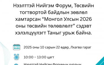 "Монгол Улсын 2026 оны төсвийн төлөвлөлт" сэдэвт хэлэлцүүлэгт Таныг урьж байна