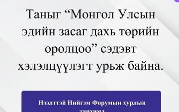 "Монгол Улсын 2026 оны төсвийн тухай хуультай хамт өргөн мэдүүлсэн хууль, тогтоолын төслүүд” сэдэвт хэлэлцүүлэг боллоо