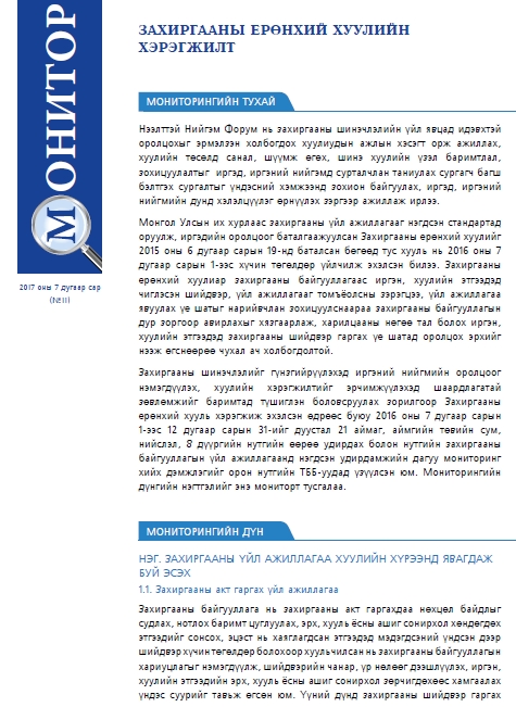 ЗАХИРГААНЫ ЕРӨНХИЙ ХУУЛИЙН ХЭРЭГЖИЛТ - Мониторинг 11