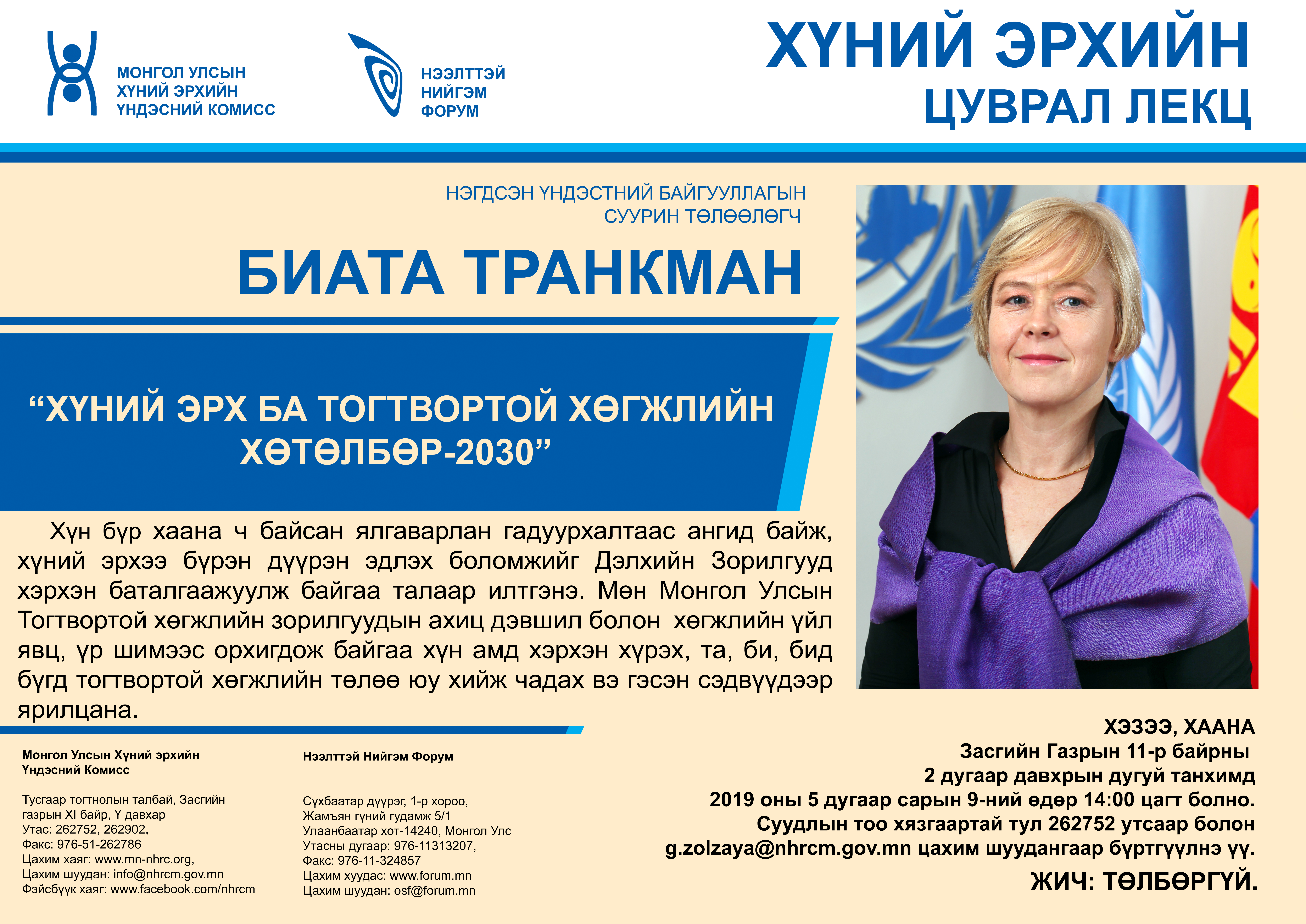 "ХҮНИЙ ЭРХ БА ТОГТВОРТОЙ ХӨГЖЛИЙН ХӨТӨЛБӨР", ИЛТГЭГЧ НЭГДСЭН ҮНДЭСТНИЙ БАЙГУУЛЛАГЫН СУУРИН ТӨЛӨӨЛӨГЧ, БИАТА ТРАНКМАН