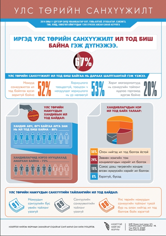 Иргэд улс төрийн санхүүжилт ил тод биш байна гэж дүгнэжээ - инфо график