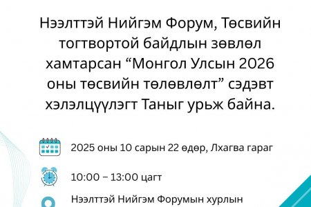 ДэлгэрэнгүйНээлттэй Нийгэм Форумын дэргэдэх Эдийн засгийн зөвлөл Монгол Улсын 2024 оны нэгдсэн төсвийн гүйцэтгэлд хийсэн аудитын тайланг хэлэлцэн зөвлөмж гаргалаа.